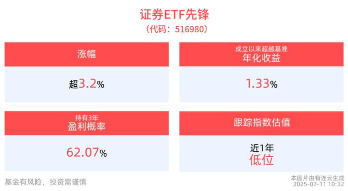 券商半年报业绩喜人,证券ETF先锋(516980)冲高上涨3.26%,成分股中银证券涨停